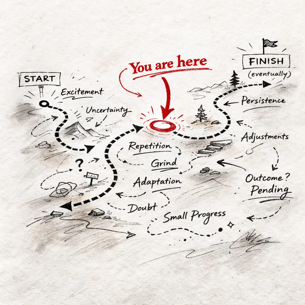 The stretch of time where you’re no longer starting but not yet arriving. Where there’s no applause. No milestone. No obvious transformation. Just repetition, adjustment, and quiet persistence. The middle can feel ambiguous.